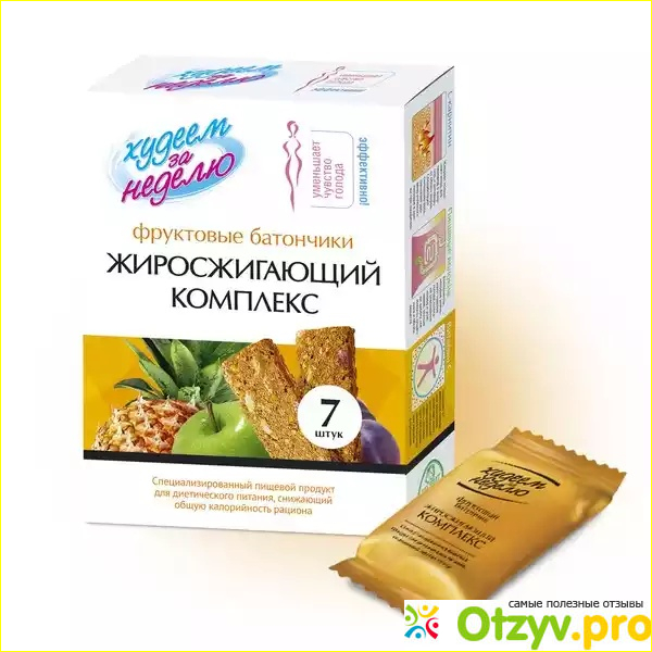 Несколько месяцев назад покупала фруктовые батончики из серии " худеем за неделю"- жиросжигающий комплекс. Они очень разрекламированы и их можно купить как в обычном супермаркете, так и в аптеке. Кстати в магазине они стоят дешевле, к тому же на них постоянно действуют скидки и акции.