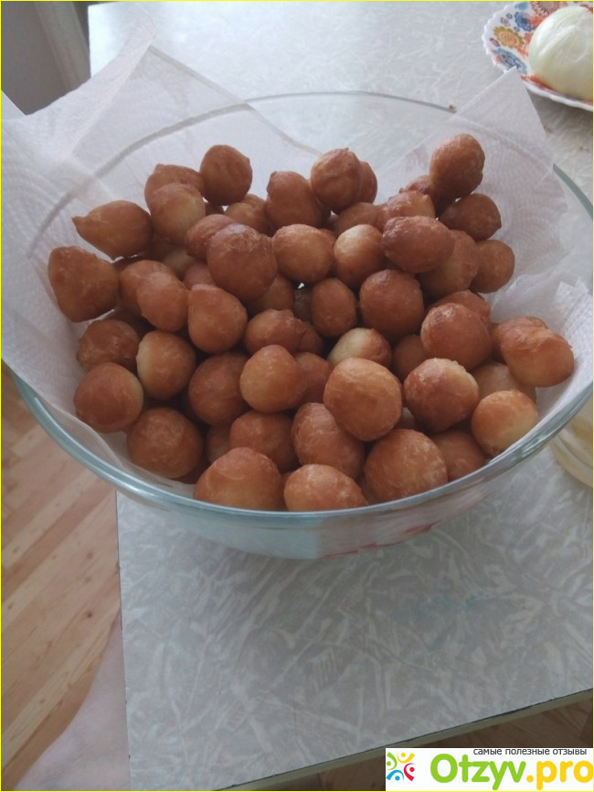 Если мы делали плотное тесто, то отрываем его маленькими кусочками, скатываем в шарики и обжариваем во фритюре до приятной корочки.