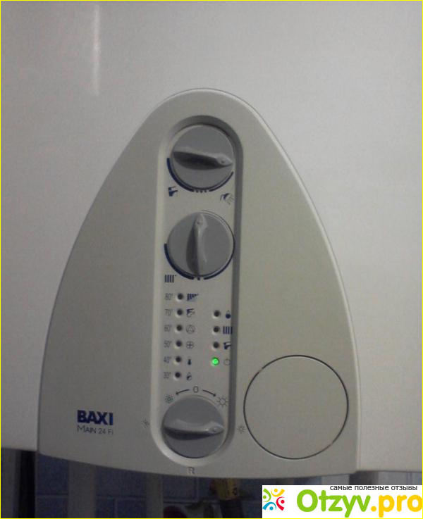 На передней панели установлены три регулятора: с помощью нижнего можно установить режим лето/зима. На режиме "лето" будет возможность получать горячую воду. В режиме "зима" - горячую воду + отопление. Есть ещё режим "R" - когда котел выключается. При этом нет ни отопления, ни горячей воды.