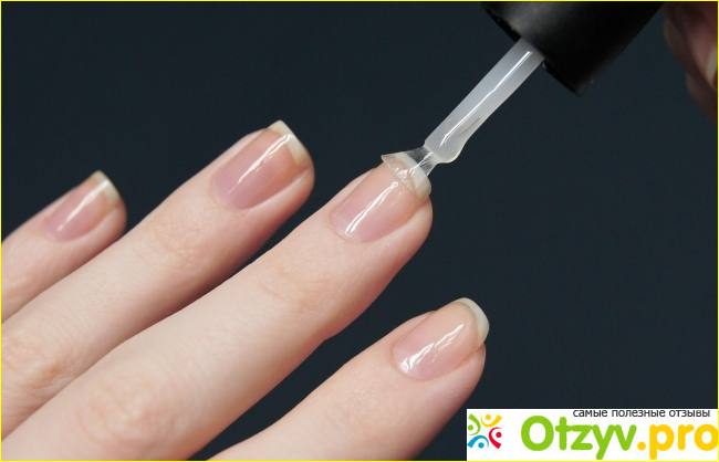 Очень понравилась кисточка из флакона. Она густо набита, имеет хорошую длину, и как мне показалось подходит при работе с ногтями самой разной длины. Для неопытных мастеров трудно рекомендовать данную базу, так как она очень жидкая, и если работать не правильно может затекать в боковые валики и под ноготь. Я стараюсь работать быстро, и распределять базу по ногтю растягивая с запечатыванием. Все излишки убираю до сушки в лампе при помощи апельсиновой палочки. В процессе нанесения неприятного запаха я не чувствовала.