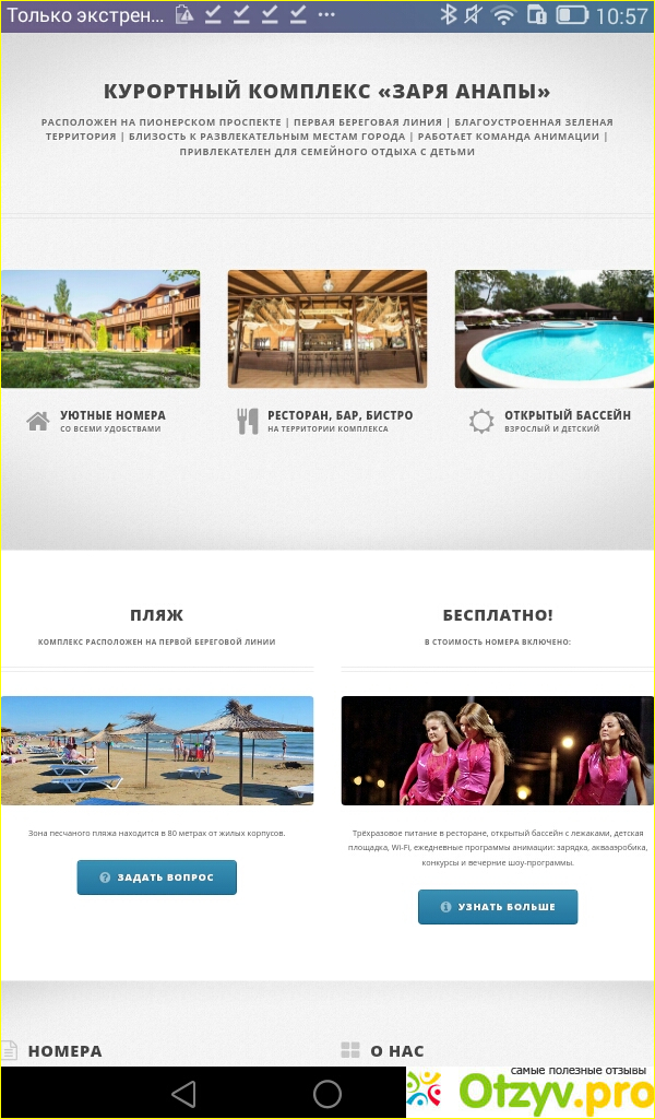 Добавлю также, что перед тем как поехать на базу Заря Анапы, мы зашли на их официальный сайт. Сайт достаточно понятный. Предлагались домики, как маленькие, так и побольше. Кроме того, в середине домиков находился уютный небольшой бассейн и лежанки рядом с ним. Кроме того бесплатно в стоимость номера входило трехразовое питание в ресторане, детская площадка, интернет, анимационные программы. Поэтому, мы сразу решили поехать именно сюда. Кроме того, по цене выходило немного дешевле. Мы всего восемьдесят тысяч рублей на двоих отдали, дети у нас маленькие, им бесплатно получилось.