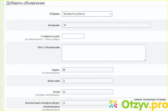 2. Вкладка "Добавить объявление". Тут вы, при желании, можете разместить свое объявление. Вам нужно будет ввести название рубрики того товара, который вы хотите, например, продать. Затем вам потребуется сделать описание к своему товару и обязательно вам нужно будет оставить свои контактные данные, например, сотовый телефон или электронную почту. В общем, в этой вкладке все четко написано, вам останется просто лишь заполнять нужные графы.