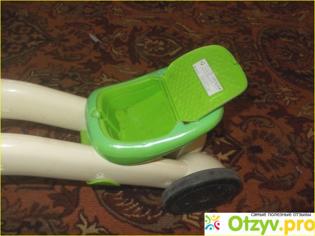 Из плюсов я очередной раз подчеркну компактность этого беговела. Он мне помещался в корзину коляски с кучей игрушек и не стеснял меня.
