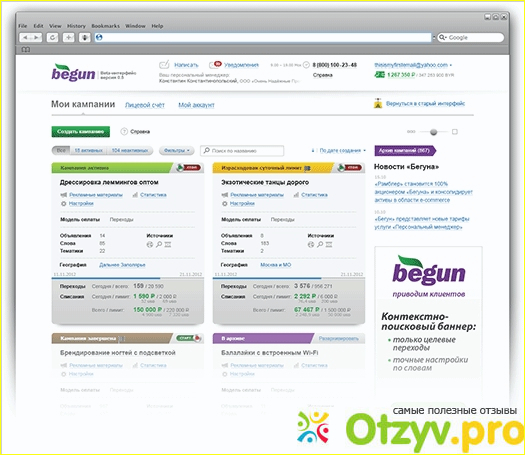Часто бывают такие случаи, когда реклама заказчика в 90 процентов случаев попадает на такие сайты. Вроде бы сайт Begun ru выполнил работу и заказчик видит, что заказ действительно выполнен. Но положительных результатов при этом нет. Именно по этой причине многие заказчики стали отказываться от ресурса и искать аналогичные варианты. Хотя были времена, когда сайт действительно давал для посетителей отличные результаты и действительно мог поднять искусственным образом рейтинг сайта.