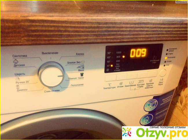 По окончанию стирки машина сигнализирует, этот сигнал хорошо слышно даже из спальной комнаты. Очень удобная ручка у дверки, слышен щелчок во время защелкивания. Особо придраться у меня не к чему к данной модели стиральной машины.