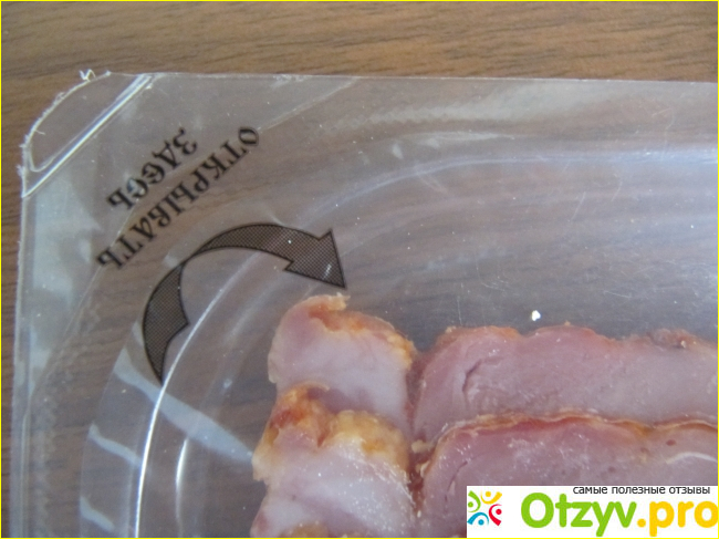 В прозрачной пластиковой упаковке находится 5 тонких аппетитных пластика бекона, глядя на них прям слюнки текут. Весит упаковка 150г., так что на раз должно хватить.