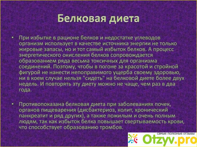 Диета на белках запрещена тем у кого проблемы и заболевания с почками так как это может ухудшить состояние и повыситься белок в моче.