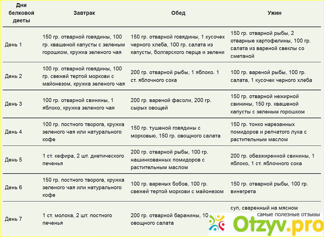 В белковой диете обычно составляется рацион питания с графиком на неделю, своеобразное меню. При белковой диете запрещается употреблять следующие продукты: хлеб и мучные изделия, молоко, кроме обезжиренных молочных продуктов, сахар, сладости, газированную воду и напитки, алкоголь и слабоалкогольные напитки, растительное и сливочное масло. Их использовать категорически нельзя.