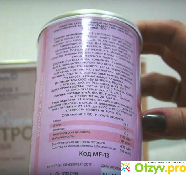 Что удивило в составе? Льняная мука! Невероятно полезный продукт, богатые всевозможными микроэлементами. Плюс много другого полезного, что надолго утоляет чувство голода и дает ощущение сытости. Продукт низкокалорийный, и таковым он остается, даже если разводить его жирным молоком, но я разводила 1%-ным (100 граммов молока на чайную ложку продукта белокового коктейля) и с удовольствием пила вместо одного из приемов пищи. Как правило, в обед!