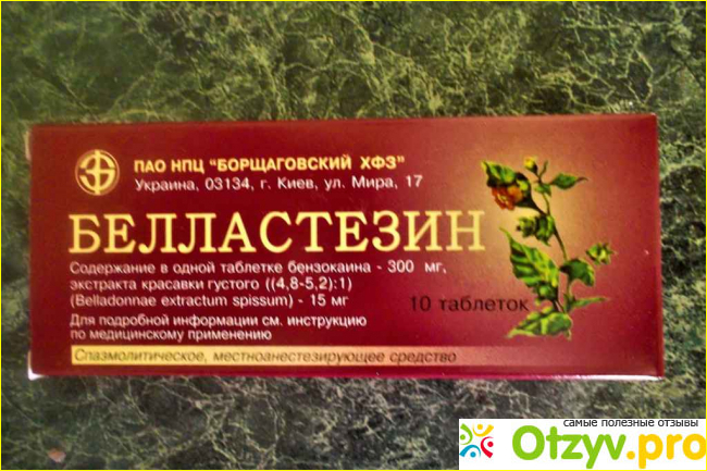Белластезин относится к категории спазмолитических, обезболивающих, гипосекреторных препаратов. Активными веществами здесь являются два компонента: 15 мг экстракта белладонны и 300 мг бензокаина + вспомогательные элементы. Лекарство выпускается в форме таблеток для приема внутрь, страна производитель Россия.