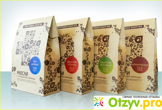 Ну и третий вид продукции - мюсли. Они изготовлены из пророщенной пшеницы. Есть без добавок, а есть с ананасами, клюквой, изюмом, миндалем, кешью и еще с разными вкусностями. И все это не жарится, нет никаких добавок, лишь слегка глазируется фруктозой. Можно есть их сухими, а можно заливать йогуртом, кефиром, молоком, кому что нравится.