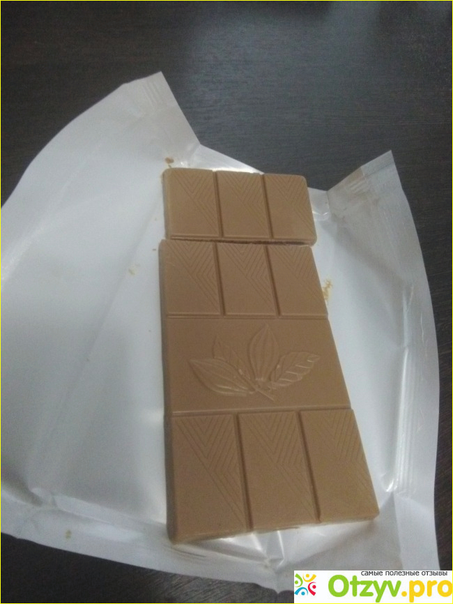 Плитка интересного карамельного цвета, моментально шоколад тает в руках, что говорит о не лучшем качестве и составе.