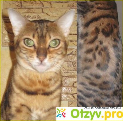 Бенгальская кошка внешне похожа на леопарда: очень красивый окрас шёрстки.