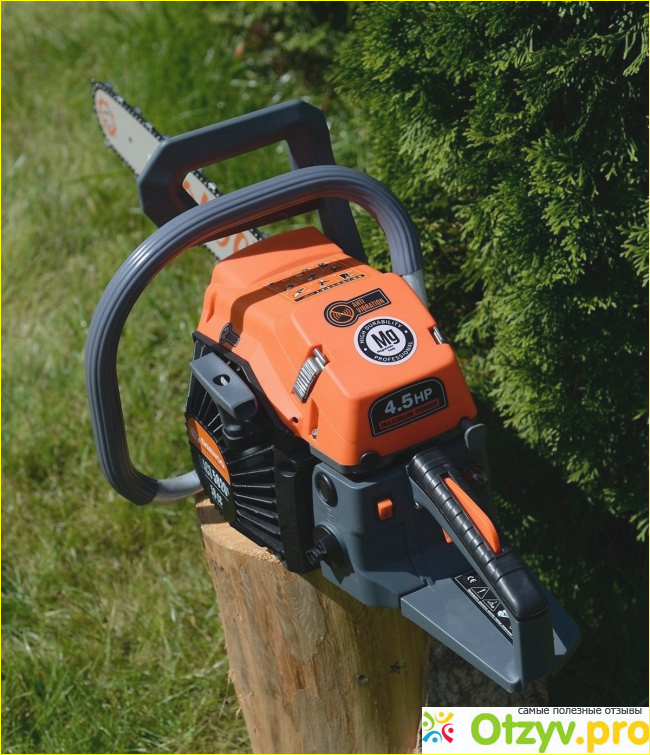 Достоинства: Мощная, берёт любые ветви и сучья, отлично работает по деревьям диаметром 25 - 35 см