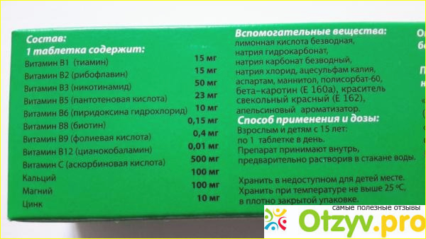 Как вы уже видите по фотографиям, в этом поливитаминном комплексе содержатся огромное количество минералов и витаминов, так необходимых для нашего организма. Ну практически таблица Менделеева!