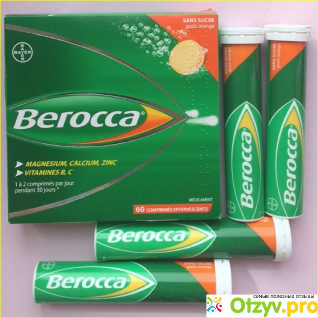 Берокка также выпускается в виде шипучих таблеток со вкусом апельсина и тропической вишни и манго, которые содержит точно такой же перечень витаминов и минералов, потому перечислять их нет необходимости.