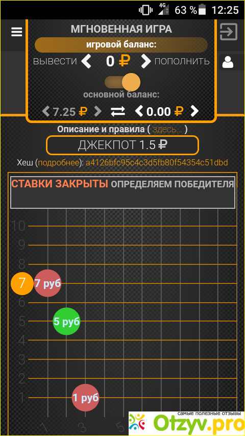 Одна из новинок 2019 года это Мгновенная игра в которую можно играть как на деньги выигранные на сайте так и пополнить баланс. Для азартных людей будет интересно. Игра принимает ставки от 1 до 10 руб. В игре максимально 5 ставок от одного участника, два участника минимально.