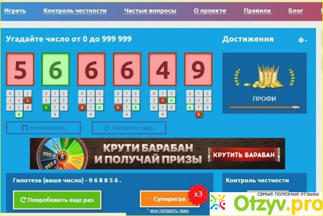 Суть данной лотереи заключается в том, что дается шесть закрытых окошек, за каждым из 6их спрятаночисло от 0 до 9, ннеобходимо выбрать свои цифры, а потом открыть все эти ячейки и узнать сколько цифр вы угадали.