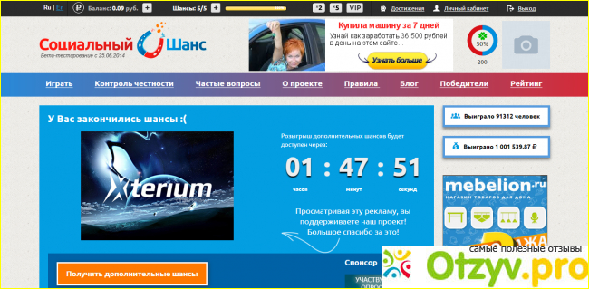 Несколько дней назад попался мне на просторах инетренета сайт беслатной лотереи socialchance.net с возможностью небольших выигрышей, используя свою удачу.