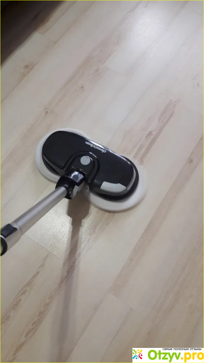 Мытье полов перестало напоминать пытку. Швабра легкая в управлении, маневренная, да и сама по себе не тяжелая, металлическая труба выполнена из алюминия, а остальные детали - пластик. Пользоваться просто, надо лишь набрать воды в специальную емкость, воды хватает кстати на 2 комнаты, на кухню чуток доливаю. Еще прикрепить салфетки к дискам, далее жмём пуск и наслаждаемся уборкой. Надо просто придерживать и направлять, остальное швабра сделает сама. Салфетки в комплектации идут 2х видом, одни для мытья отлично подходят, любых полов, а другими удобно полировать пол, ну или мыть гладкие полы (наливные например). Полы теперь даже сын (10 лет) сам моет с удовольствием, ходит важный по дому, швабру держит.