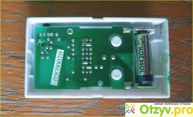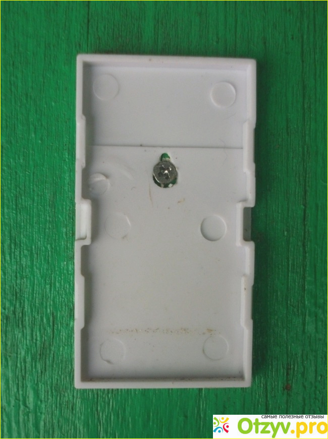 Снята крышка батарейного отсека. Видно "ушко" для крепления на гвоздь или саморез.
