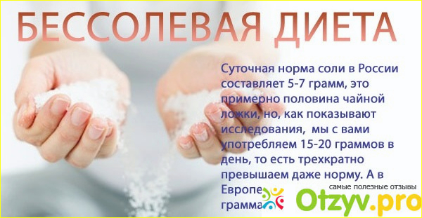 Если временно ограничить свой организм от употребления соли, то такой эффект станет только положительным для организма, ведь диета без соли помогает нормализовать работу сердечно-сосудистой системы, а также наладить работу почек и предотвратить появление мочекаменной болезни. Множество положительных свойств есть в этой диете, поскольку бессолевая диета действительно помогает и нормализует многочисленные процессы в организме человека.