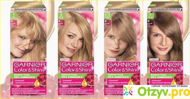 В линейке Garnier два вида продукта. Color & Shine - в его палитре присутствуют шестнадцать прекраснейших оттенков, и в состав включены клюква в виде экстракта и аргоновое масло. В отзывах отмечается, что волосы становятся сухими и тусклыми спустя три или четыре недели.