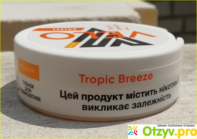 На обзоре - "Тропический бриз" - Velo Tropic Breeze. Вкус весьма химозный. Особенно с первых секунд. На слизистой возникает небольшое жжение (именно это и значит, что никотин начал выделяться), которое немного успокаивается через секунд 20.