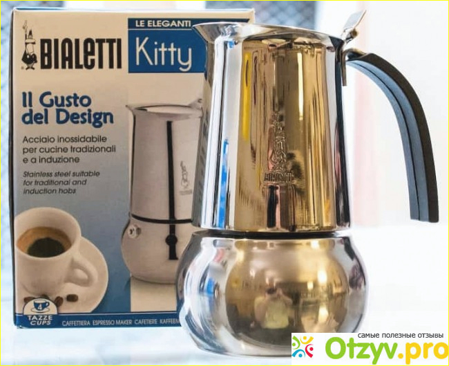 Кофеварку Bialetti kitty, мы купили в подарок моей сестре, большой любительнице вкусного, ароматного кофе. Она вечно всюду опаздывает, и в спешке кофе часто выкипает на плиту. Плюс данной кофеварки, можно оставить её на газу и спокойно собираться по своим делам. Когда кофе готов, она издаёт звук, оповещая владелицу об этом. Вмещает в себя либо четыре порции эспрессо, либо две американо. В общем-это 200 мл. В кофеварке есть три отделения. Нижнее, для холодной воды, которая наливается для приготовления кофе. В середине, есть отделение, для молотого кофе. И третье, то куда поступает уже сваренный. Существенный плюс, по трубке поднимается профильтрованный, уже без кофейной гущи, напиток. Если вы приобретёте такую же, то сможете отметить, для себя, все её достоинства. Думаю всех раздражает процесс процеживания через ситечко, тем более далеко не всегда удаётся идеально таким образом отфильтровать. Сказать, что подарок сестре просто понравился, будет мало. Она радовалась подарку, как ребёнок новой игрушке. Обошёлся не много, 2500 рублей. Качество хорошее, моется отлично. Рекомендую заменить старую турку, кофеваркой Bialetti kitty.