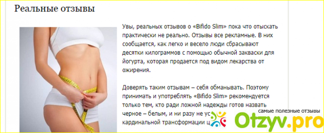Потом я так же нашла отзывы многих девушек, которым препарат не помог похудеть, а ведь все надеялись на чудо, но его не произошло. Опыт приема Бифидо Слим для меня оказался печальным.