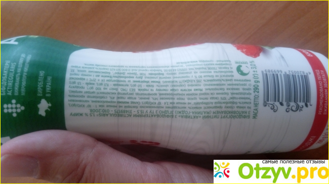 Йогурт в удобной маленькой бутылочке, вес всего 290 грамм, в самый раз для перекуса.