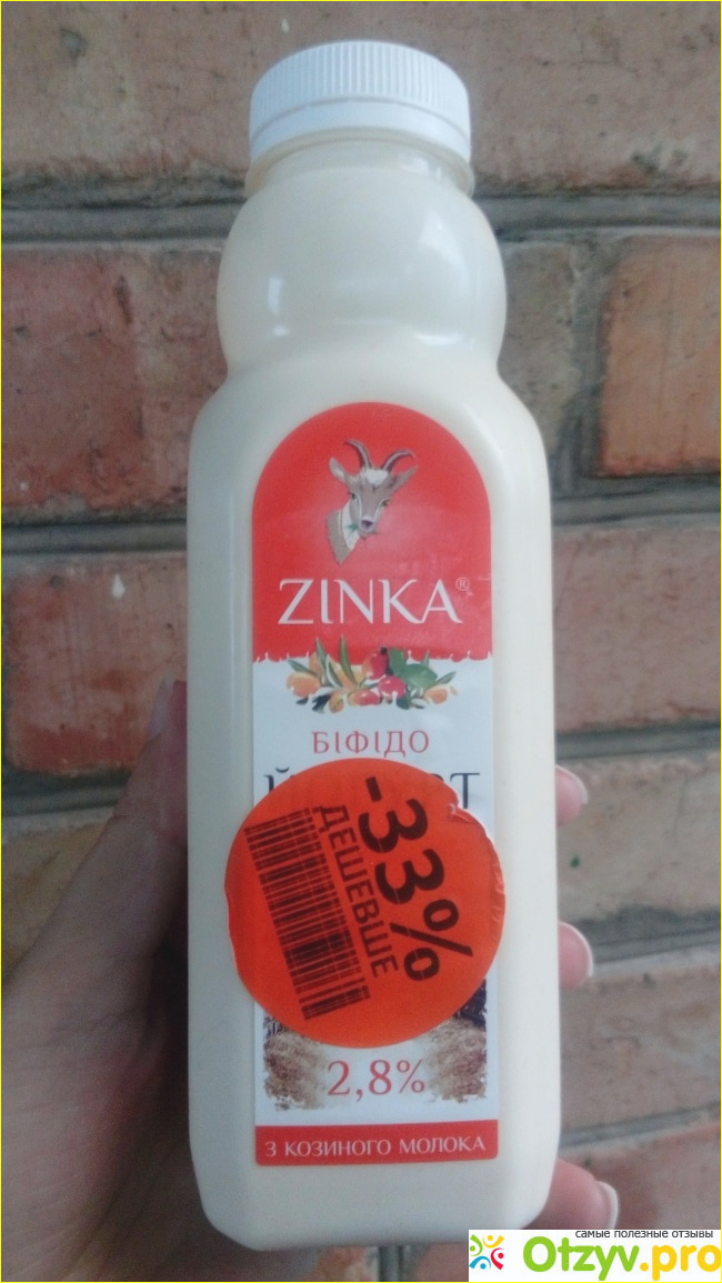 Бифидойогурт Zinka с козьего молока с облепихой и шиповником мне пришелся по вкусу, только вот цена его кусается. Полная стоимость такого йогурта целых 32 грн и это за бутылочку объемом всего 510 грамм. Иногда можно встретить на полке супермаркета по уцененной ? цене, если остаётся всего 2 дня до окончания срока годности, тогда можно преобрести намного дешевле, за минусом 33%, то есть за 22 грн.