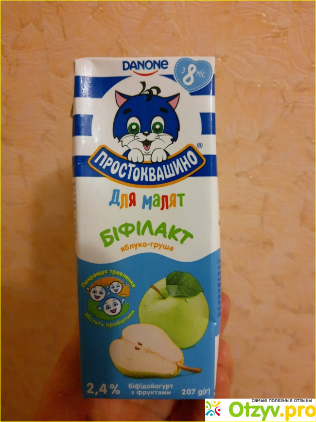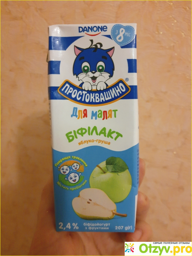 Удобная упаковка , ребенку удобно держать в маленькой ручке, есть трубочка , она запакована, очень удобно брать на прогулку. Вкус бифилакт вкусный, чуть сладковатый, без кусочков фруктов. Объм 207 г, жирность 2.4%, можно давать деткам с 8 мес. Моей дочери этот бифилакт нравится, выпивает всё и сразу). В составе конечно есть сахар и крахмал, но на вкус это не влияет.