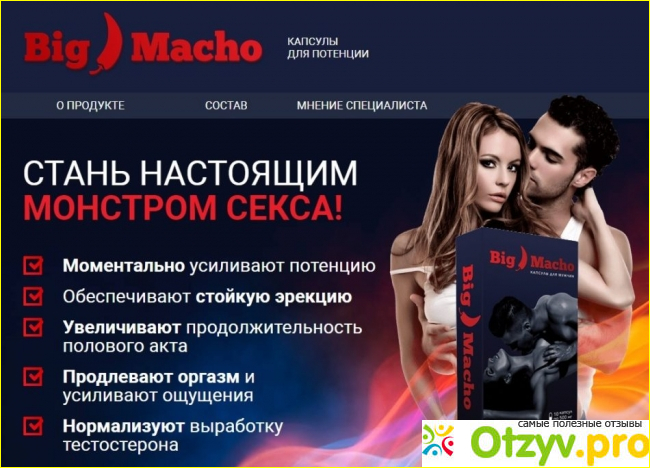 Приветствую вас, уважаемые читатели моего отзыва! Сегодня я бы хотела познакомить вас с таким препаратом, как «Биг мачо». Собственно, исходя даже из его названия, несложно догадаться, что данное средство является препаратом для мужчин, а вернее средством для повышения потенции. Хочется сразу обозначить, что «Биг мачо» - это биологически активная добавка, потому от простатита или импотенции она вас точно не спасет.