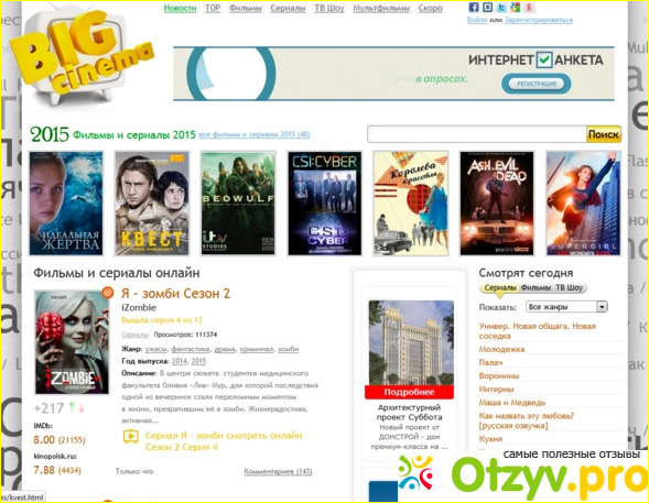 был любимым сайтом по просмотру фильмов, сериалов, передач до последнего времени. Была его постоянным посетителем года три. Неплохой подбор материала, достаточно высокое качество видео, возможность подписки на обновление и делать закладки в местах просмотра.