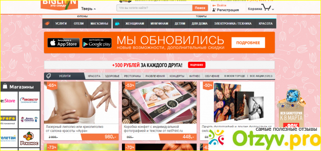 Сайт Биглион очень интересен тем, что благодаря ему можно хорошо сэкономить.