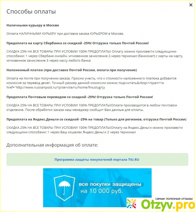 Приятно, что в этом интернет-магазине предусмотрена система скидок. Очень большим плюсом можно назвать то, что покупки защищены, причем на довольно большую сумму.