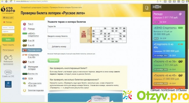 На сайте Сто лото можно увидеть адреса продаж, распространения и выплат. Из перечня можно выбрать нужный округ, область и город в нем. На этом же сайте в режиме онлайн можно проверить свой билет на предмет выигрыша.