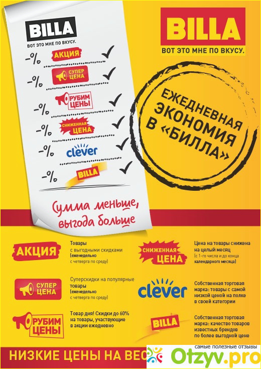 В магазине Билла очень часто проходят выгодные акции, дают подарки. И поэтому товар там разбирают моментально. Я поняла, что покупать продукты в магазине Билла очень выгодно.