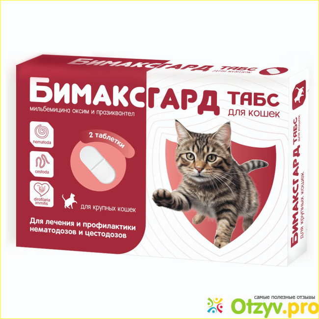 Это средство широкого спектра действия - против круглых и ленточных гельминтов, плюс, как написано, работает на личиночные формы. Таблетка плотная, но не огромная, дала с вкусняшкой, съел и все. Нашли потом гостя в лотке, но без признаков жизни. Повторила через 2 недели, как рекомендовано производителем при наличии глистов. Кот чувствует себя отлично, стул норм. Цена гуманная, инструкция понятная. Приятно, что наконец есть отечественный аналог, который так хорошо работает и охватывает большое количество паразитов!