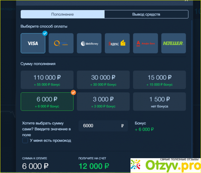 Так, потренировавшись на демо-счете, убедившись, что игра получается, можно переходить на реальную игру на деньги. Пополнить счет и вывести заработанные деньги можно через несколько платежных систем.