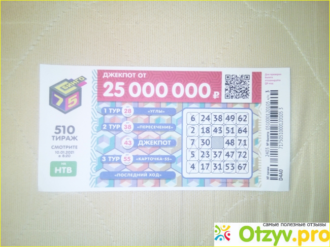 Игра отличается от других лотерей своей оригинальностью зачеркиваний чисел в квадрате. За эти полгода, ещё ни разу не выигрывала существенных сумм, лишь были крошечные выигрыши, чтобы отыграть сумму билета. Лотерея стоит 75 рублей. Сегодня этой лотерейные, я дала последний шанс, больше желания играть нет, так как одни проигрыши и денег я потратила больше, чем выиграла.