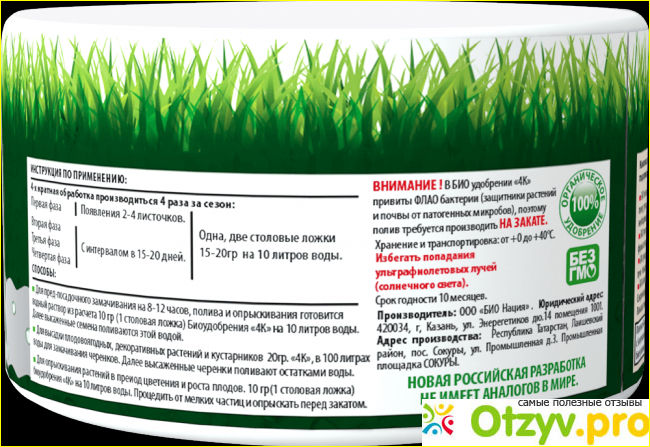 Бывает, что в почве недостаточно полезных веществ и на помощь вам может придти 4к. Это биологически чистое удобрение, в нем нет никаких вредных веществ, об этом можно не переживать. Подкормка для почвы — 4к-это не заменимый компонент при выращивании растений. Оказывается, многие садоводы используют для прикормки растений в своём огороде. В интернете читала многочисленные положительные отзывы об этом удобрении. На официальном сайте много полезной информации об использовании этого удобрения. Оно эффективное и быстродействующее.
