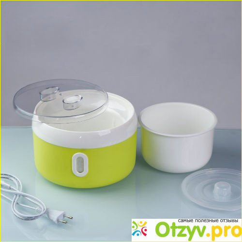 Сготовлена из эко-пластика самого высокого качества, который термоустойчивый. Я живу в обычнейшей деревне, поэтому натуральными продуктами обеспечена, и не нужно бегать за химией в магазины. Йогурт получается довольно густым, насыщенным, а главное натуральным и вкусным! Лично я ложу закваски не 50 мл как описано в руководстве, а 100 мл, тогда йогурт получается вообще обалденный.