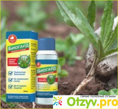 Как заявляют разработчики этого препарата, внутри находятся только органические компоненты без каких-либо синтетических веществ. Поэтому оно отличается высокой безопасностью. Вдобавок препарат «Биогард» не только борется с сорняками, но и защищает саженцы от неблагоприятных воздействий.