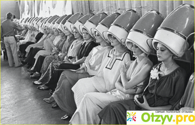 Для этого женщина отправлялась в специальное кресло с феном-цилиндром, под которым она держала головы определенное время.