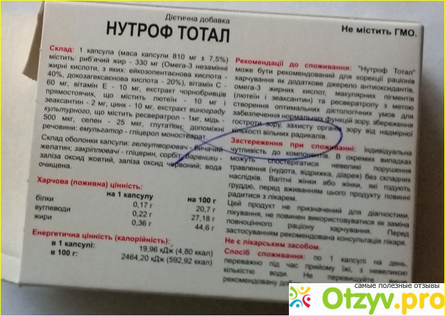 Благодаря этим капсулам я действительно стала лучше видеть, насколько это возможно, при существующей патологии. При чем, я работаю за компьютером по 12 часов в сутки. Капсулы "Нутроф Тотал", содержащие комплекс очень важных компонентов (витамины, микроэлементы, анитоксиданты, омега-3 жирные кислоты, ресветратрол) помогают устранить усталость глаз, уменьшают болевые ощущения, улучшают зрение.