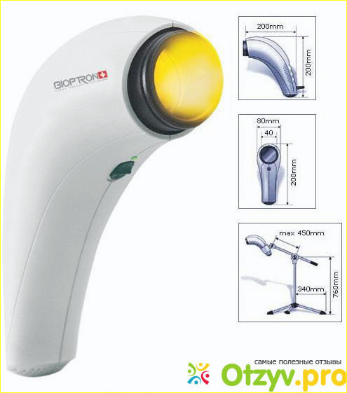 Биоптрон "Про". Он оснащен небольшим приспособлением для более удобного его размещения и использования. Его можно с легкостью и комфортом использовать дома. Его вес составляет около трех с половиной килограмм;