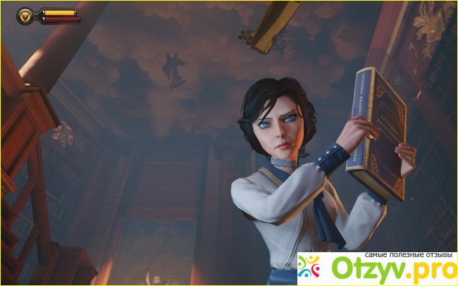 Конечно как и раньше весь сюжет завязан на науке и родственных отношениях (точнее трагедии), и конечно сюжет интересен очень, но и ему немного чего то не хватает (логики в конце хотя бы). И конечно тянет эту игру очень сильно Элизабет (что, кстати, тоже не обычно для биошока, напарник), умная, сочувственная и очень оптимистичная. Но впечатление от нее ближе к концу заметно ухудшается (слишком уж быстро она стала совсем противоположной себе, злой и циничной, и уже не вызывала той симпатии и сочувствия).