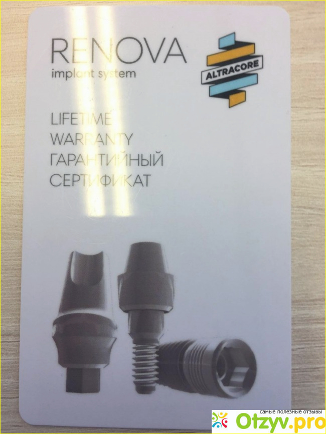 Стоматолог предложил на выбор несколько вариантов. Особой разницы я не понимал, но что бы исключить шанс отторжения организмом, остановились с врачом на биосовместимых имплантатах Renova.